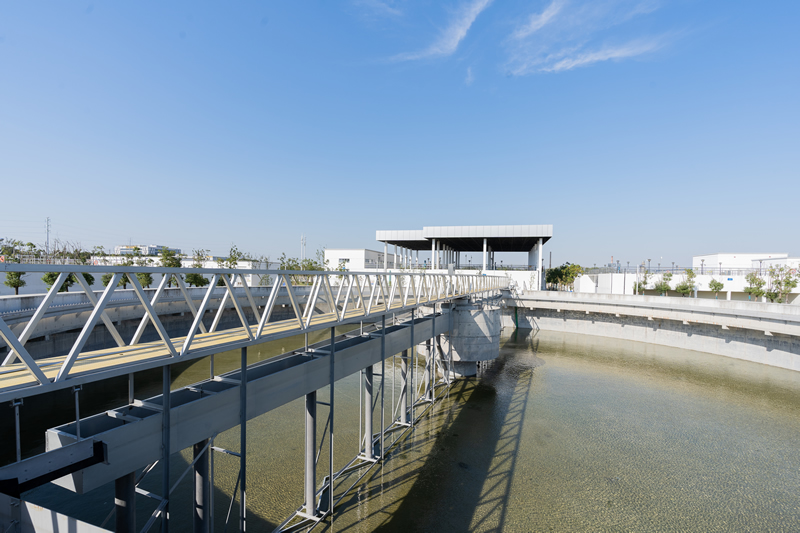 该设备采用周边传动,污水从池中心的进水管流入,经稳流筒扩散后,均匀地向周边呈辐射状流出,呈悬浮状的污泥经沉淀后沉积于池底,驱动装置带动工作桥架沿周边旋转,并带动刮臂及刮泥板转动,刮板将污泥刮集后由吸泥管依靠池内静水压抽吸至集泥槽内排入中心泥缸,再通过中心排泥管排出池外,水面的浮渣通过旋转撇渣装置导入排渣斗内排出池外;而上清液则通过三角形出水堰板溢入出水槽内排出。
