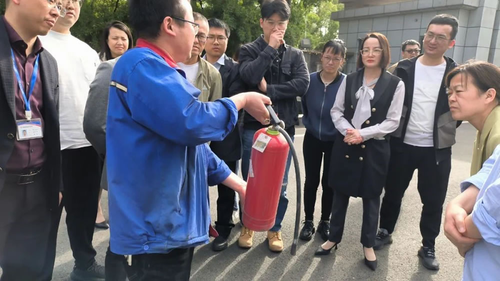 演练过后,在厂区东北角空地开展了干粉灭火器灭火演练,副总指挥张盘新强调了干粉灭火器的使用方法和注意事项,各部门人员均轮流实操。