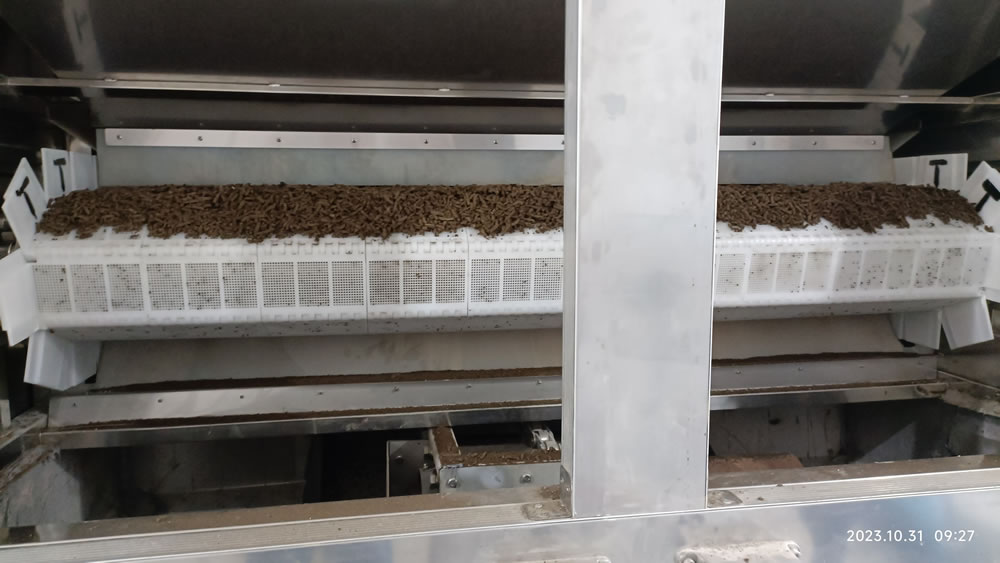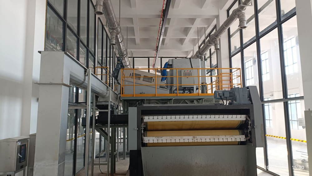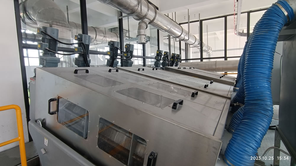 大亚湾项目位于广东省惠州市大亚湾开发区,是大亚湾水务集团第二水质净化厂三期工程项目的污泥系统的污泥低温干化工程。污泥干化工艺流程为:储泥池→污泥提升螺杆泵→叠螺机→高压带机→湿料仓、螺旋输送机→切条机→低温干化主机→刮板输送机→干料仓→污泥车运走,出泥含水率小于40%。除臭系统:离子新风系统、生物除臭系统。