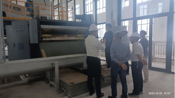 10月19日公司董事长张董与山东日照客户到现场考察低温干化机出泥效果