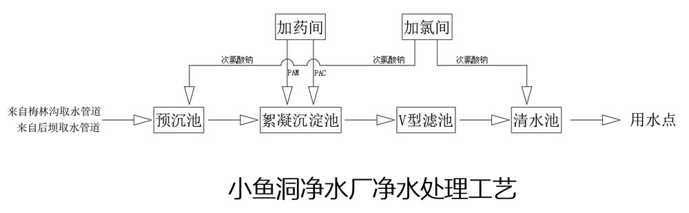 小鱼洞净水厂位于彭州市小鱼洞镇西侧,规模为2.0万m3/d,净水厂包括净水处理和废水处理系统,净水采用常规处理工艺。